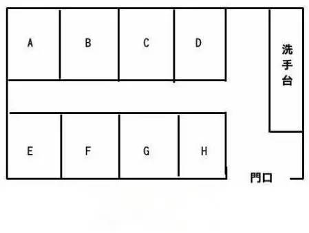 題目:你要去一個(gè)布局如下圖的公共衛(wèi)生間,里面沒(méi)有一個(gè)人,那么憑直覺(jué)你會(huì)選擇去哪個(gè)小間方便呢?