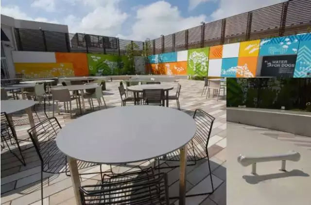 ↑木更津三井奧特萊斯購物城是一座海濱小鎮(zhèn),很多日本人會帶狗前來,這是專門開辟的狗與主人的共同休息區(qū)——栓狗樁也很有創(chuàng)意